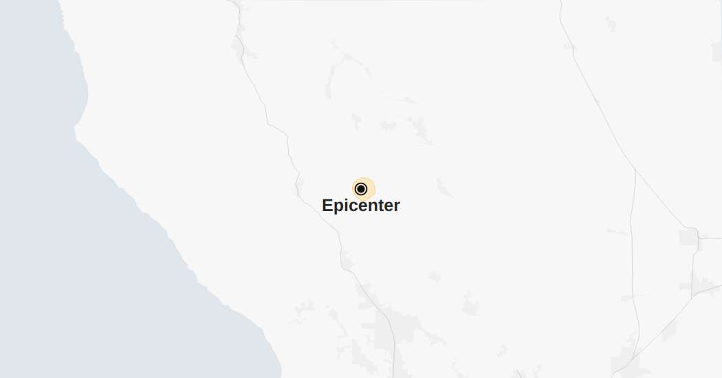 Note: Map shows the area with a shake intensity of 3 or greater, which U.S.G.S. defines as “weak,” though the earthquake may be felt outside the areas shown. All times on the map are Pacific time. The New York Times